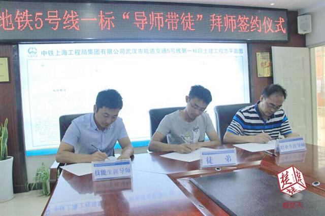 9月7日上午,中鐵上海工程局武漢地鐵5號線1標項目部,舉行了一場以“薪火相傳 筑夢青春”為主題的“導師帶徒”拜師簽約儀式,該項目部今年入職的9名新入職員工,與導師“配對”成功。...