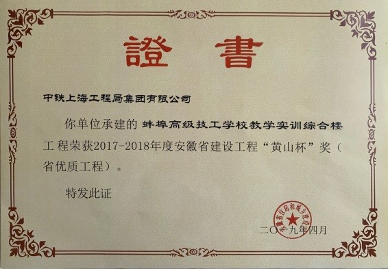 公司承建的蚌埠高級技工學(xué)校教學(xué)實訓(xùn)綜合樓工程榮獲2017-2018年度安徽省建設(shè)工程“黃山杯”獎(省級優(yōu)質(zhì)工程)。...