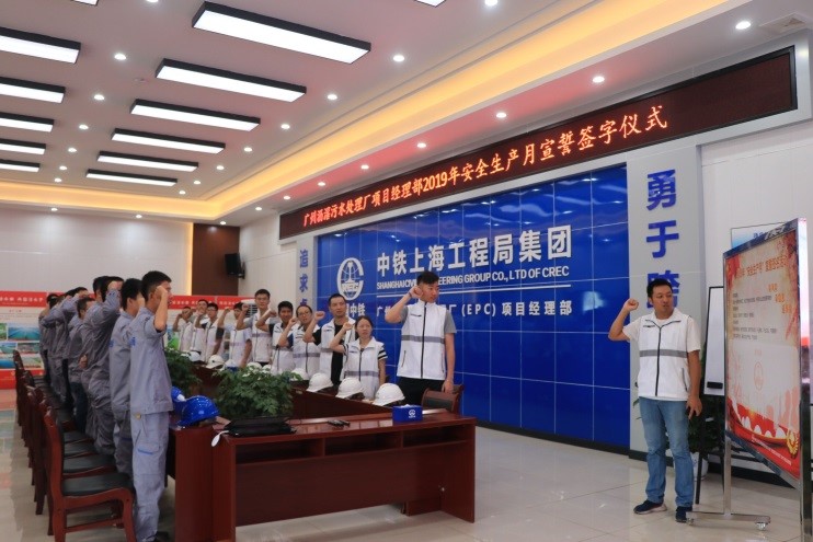 廣州瀝滘污水處理廠項目部:組織全體職工進(jìn)行2019年安全質(zhì)量集體宣誓,并聯(lián)合業(yè)主、監(jiān)理單位在會議室舉行簽字儀式。...
