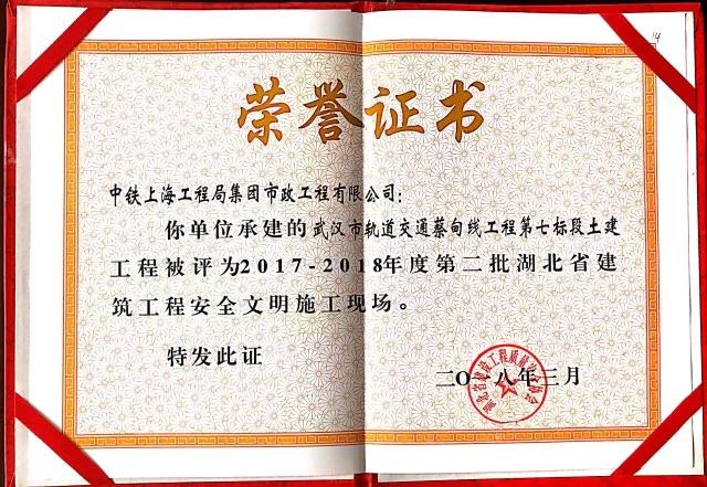 日前,從湖北省建設(shè)工程質(zhì)量安全協(xié)會傳來喜訊,中鐵上海工程局集團(tuán)市政公司承建的武漢市軌道交通蔡甸線工程第七標(biāo)段土建工程榮獲“湖北省建筑工程安全文明施工現(xiàn)場”榮譽(yù)稱號...