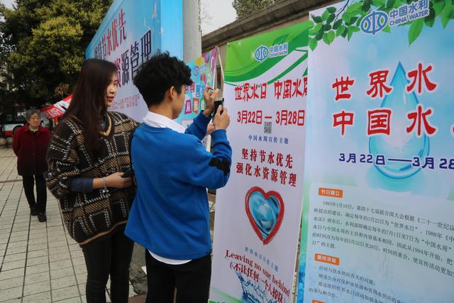 活動現(xiàn)場張貼著“世界水日”和“中國水周”宣傳掛圖、懸掛“實施國家節(jié)水行動 建設(shè)節(jié)水型社會”的宣傳標(biāo)語。中鐵上海工程局集團市政工程有限公司18名志愿者向過往市民及大學(xué)生發(fā)放成都市節(jié)水用水宣傳小冊子,并通過圖片展示、節(jié)水知識問答等方式宣傳城市節(jié)水和水環(huán)境保護,志愿者們積極主動紛紛邀請過往群眾拿出手機掃描二維碼,點擊關(guān)注“水潤成都”微信公眾號,利用多媒體平臺,了解水務(wù)動態(tài)和相關(guān)政策法規(guī)。