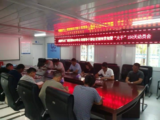 蘇州陽澄湖引水工程二標(biāo)段項目部:組織項目部全體員工宣貫公司會議精神,并召開“大干150天”活動動員會,結(jié)合項目實際情況對后5個月的工作進(jìn)行了安排部署:一是根據(jù)公司“大干150天”活動施工生產(chǎn)計劃,詳細(xì)制定頂管、沉管施工工期節(jié)點(diǎn),明確大干期間工作任務(wù)。二是深入施工現(xiàn)場查缺補(bǔ)漏,確保人、機(jī)、料在大干期間滿足施工生產(chǎn)需求,保證工程進(jìn)度、質(zhì)量、安全全部達(dá)標(biāo)。三是項目全體員工要有緊迫感,打起百分之百的精神,干好本職工作,借大干150天熱潮,完成公司下達(dá)的產(chǎn)值指標(biāo)。(秦旖旎)