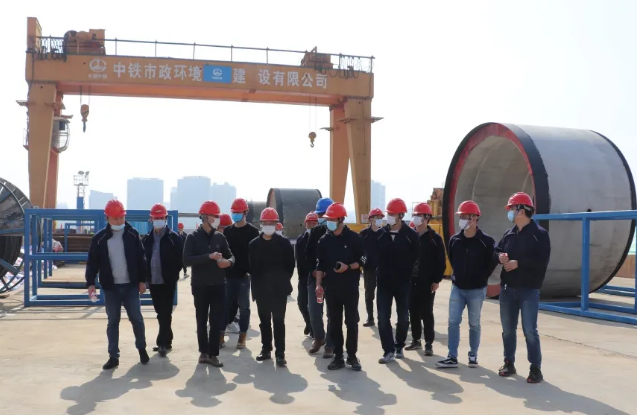 觀摩期間,王繼武一行實地察看了現(xiàn)場安全文明施工情況,聽取了項目負責人對施工進展、現(xiàn)場管理、面臨的重難點問題等方面的詳細匯報。王繼武就施工現(xiàn)場放置的DN3500F型混凝土管結構、頂管進排泥系統(tǒng)工作原理與項目負責人進行了交流。觀摩最后,王繼武對項目現(xiàn)場的安全文明施工建設表示高度贊許,并對工程DN3500穿湖頂進貫通表示祝賀。