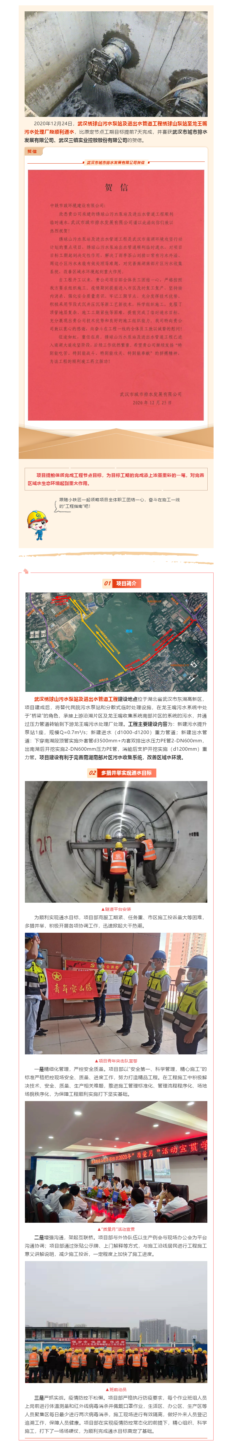 武漢繡球山污水泵站及進(jìn)出水管道工程繡球山泵站出水管段順利通水