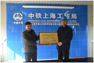 1月21日,徐州市水利局規(guī)計處處長于孝民為公司徐州駱馬湖水源地施工03標項目部頒發(fā)“文明工地”證書,并舉行授牌儀式。