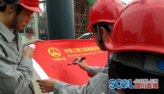 成都地鐵7號(hào)線二標(biāo)正在緊張施工,作為該標(biāo)段施工企業(yè)中鐵上海局21日啟動(dòng)了“首屆廉潔文化宣全周”活動(dòng)。現(xiàn)場,還進(jìn)行了廉潔從業(yè)承諾簽名。