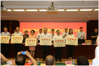 6月6日,2017年上海市合作交流系統精神文明建設大會在上海市市政大廈召開,會上,合作交流黨委向榮獲十八屆上海市文明單位榮譽稱號的單位頒發了獎牌、獎狀。作為獲獎單位,公司執行董事、黨委書記尹朝援出席會議并代表公司接受了合作交流黨委的表彰。自公司重組、東遷上海以來,公司黨委主動與上海地方政府部門取得工作對接,積極融入上海市精神文明創建體系,經過不懈努力,連續兩屆榮獲上海市合作交流系統文明單位榮譽稱號。在此基礎上,公司黨委繼續狠抓精神文明建設,全面貫徹落實黨的十八大和黨的十八屆三中、四中、五中、六中全會精神,深入學習貫徹習近平總書記系列重要講話精神,以培育和踐行社會主義核心價值觀為根本,堅持圍繞中心、服務大局、立足實際、注重實效,深入開展群眾性精神文明創建活動,推動物質文明和精神文明協調發展。在第十八屆(2015-2016年度)上海市文明單位創建期間,構筑了完善的創建體系,形成了黨政工團齊抓共管的創建格局,努力打造建筑精品,積極履行社會責任,促進了企業全面協調可持續發展。