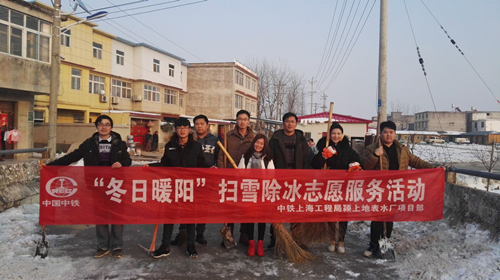 項目駐地社區(qū)大部分是老人和留守兒童,持續(xù)低溫導(dǎo)致路面出現(xiàn)積雪冰凍現(xiàn)象,給群眾和兒童的出行帶來了極大的困難和安全風(fēng)險,為保證大家出行安全,在項目團(tuán)支部的號召下,8名團(tuán)員青年帶上掃把、鐵鍬來到當(dāng)?shù)卮迕癯鲂械闹鞲傻郎线M(jìn)行了雪地清掃活動。大家不畏嚴(yán)寒,團(tuán)結(jié)協(xié)作,干勁十足,在凜冽的寒風(fēng)中,大家手拿鐵鍬、掃帚等工具,鏟的鏟,掃的掃,干的熱火朝天。清掃中大家有說有笑,路過的村民也趕緊幫忙,經(jīng)過4個多小時的連續(xù)清掃,主干道上的積雪全部被清掃干凈,給群眾出行提供了安全保證,得到了駐地群眾高度贊揚(yáng)。