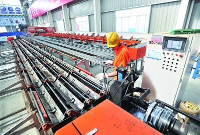記者走到加工鋼筋構(gòu)件的機器人處觀察發(fā)現(xiàn),技術(shù)工人只需要在機器人上輸入鋼筋彎曲度和件數(shù)等數(shù)據(jù),機器人就自動拉動盤條,不僅能將鋼筋拉直,而且還能將鋼筋加工成棱角分明的鋼構(gòu)件,每一個鋼構(gòu)件大小均保持一致,讓人嘆為觀止。